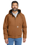 An update to a Carhartt icon-the J130- this dependable, durable jacket was created with input from the hardworking people who wear our gear day in and day out. 12-ounce, 100% ring spun cotton washed duck Quilted nylon lining for easy on and off; 80-gram, 100% polyester 3M Thinsulate featherless insulation for warmth without the weight Attached quilted three-piece hood with drawcord closure Full-length brass front zipper Two interior pockets: one zippered, one hook and loop Two large hand pockets Pen stall in right pocket Locker loop Elbow pleats for ease of movement Rib knit cuffs and waistband Carhartt-strong, triple-stitched main seams Carhartt label sewn on left pocket Loose fit