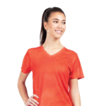 Holloway Ladies Cloud Short Sleeve T-Shirt. 5.6 Ounce 95% polyester/5% spandex wicking knit. Fully sublimated design. Wicks moisture. Odor resistant. Ladies' fit. Tagless Label. V-neck collar. Garment protects against the sun with 50+ UPF. Set-in sleeves. Because of the manufacturing process of the fabric and garment, each t-shirt will be unique.