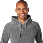 J America Adult 7.0 Ounce Vintage Zen Hooded Pullover. 7.0 ounce, 55/45% Cotton/Polyester burnout fabric. Acid washed with silicone finish. Flatlock stitching details throughout. Dyed to match draw cords. Raw edges on all seams. Raglan sleeve and V-notch neck line, front pouch pocket. Tear away label.